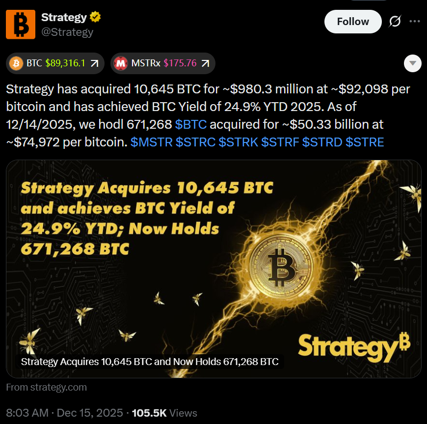 Regardless of the volatility, business have actually continued to purchase. Technique stated Monday that it got more than 10,000 BTC recently alone, raising its two-week overall to over 20,000 BTC.