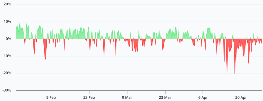 The Bitcoin continuous futures annualized financing rate has actually stayed primarily unfavorable over the previous 2 weeks, a common indication of growing bearish self-confidence. Strangely enough, this occurred while Bitcoin’s cost leapt to $78,000 from $72,000 on April 9 and the majority of those bets are at a loss at $76,700. A rally above $80,000 would likely require traders to close their positions.