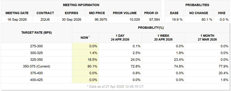Suggested target rate possibilities for Sept. 16 Fed conference. Source: CME FedWatch tool