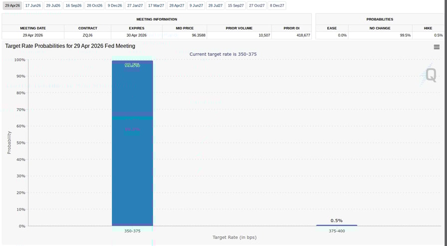 The most recent information from CME Group’s FedWatch Tool put the opportunities of the Fed altering rates at next week’s conference at almost no.