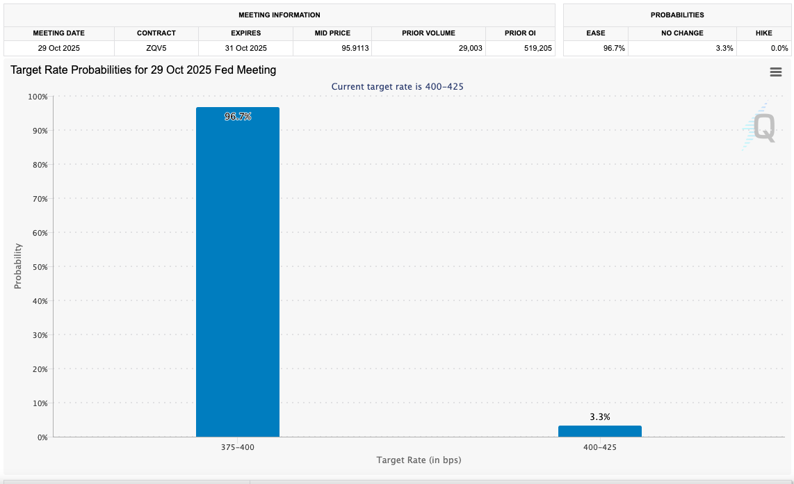 CME Group’s FedWatch Tool, which tracks market chances of interest-rate relocations by the Federal Reserve, extremely preferred a 0.25% decrease on Oct. 29.