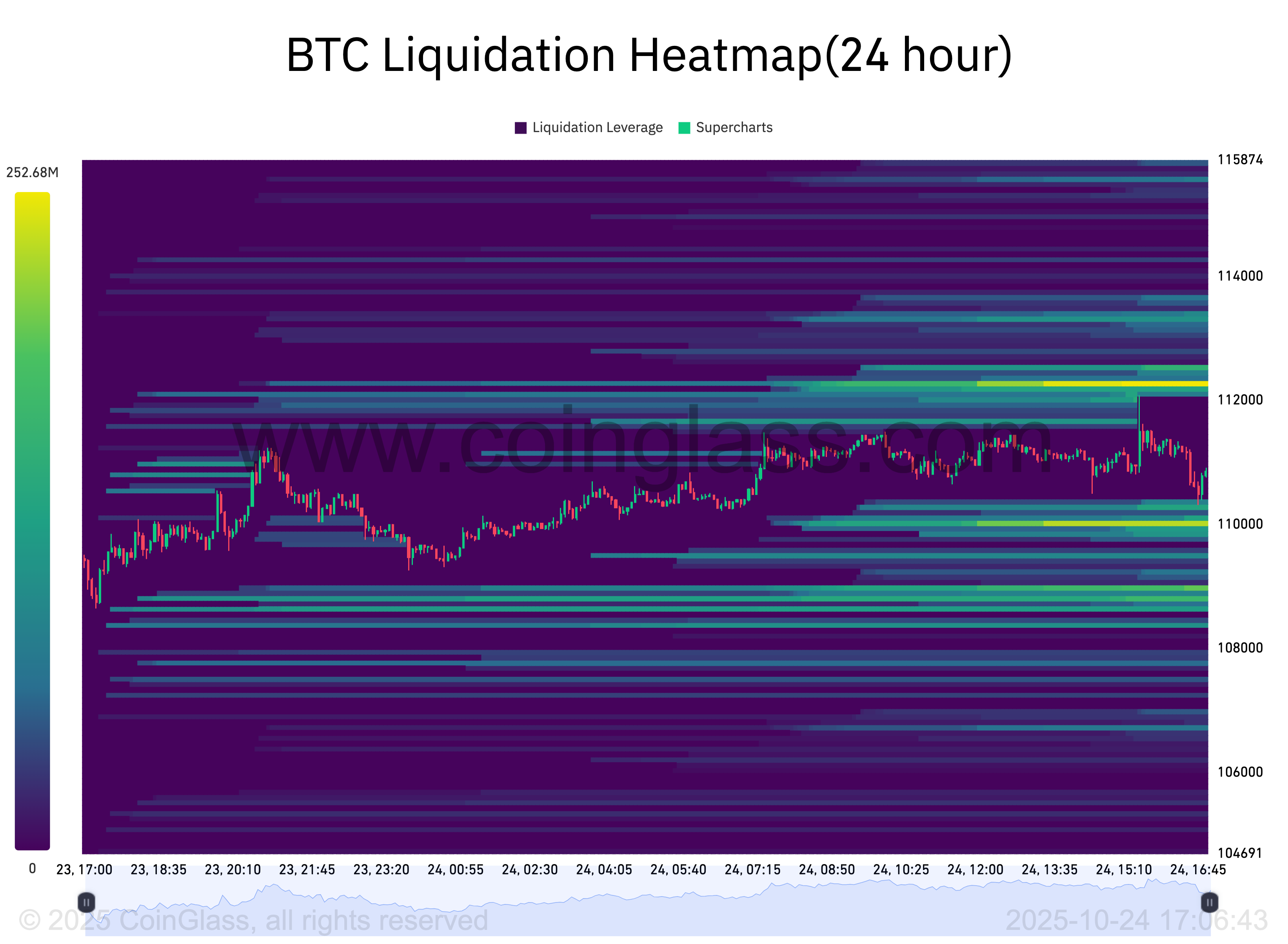 Trader Diego White explained exchange order-book liquidity conditions as “heavy,” as information from CoinGlass revealed cost approaching a brand-new ladder of quotes around $110,000.