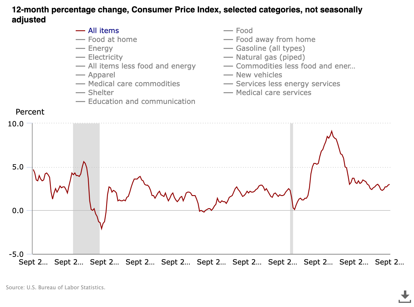 Both the CPI and core CPI were 0.1% listed below their expected levels, circling around 3%, according to a main release from the United States Bureau of Labor Data (BLS).