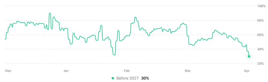 Chances of crypto market structure legislation approval by 2027. Source: Kalshi