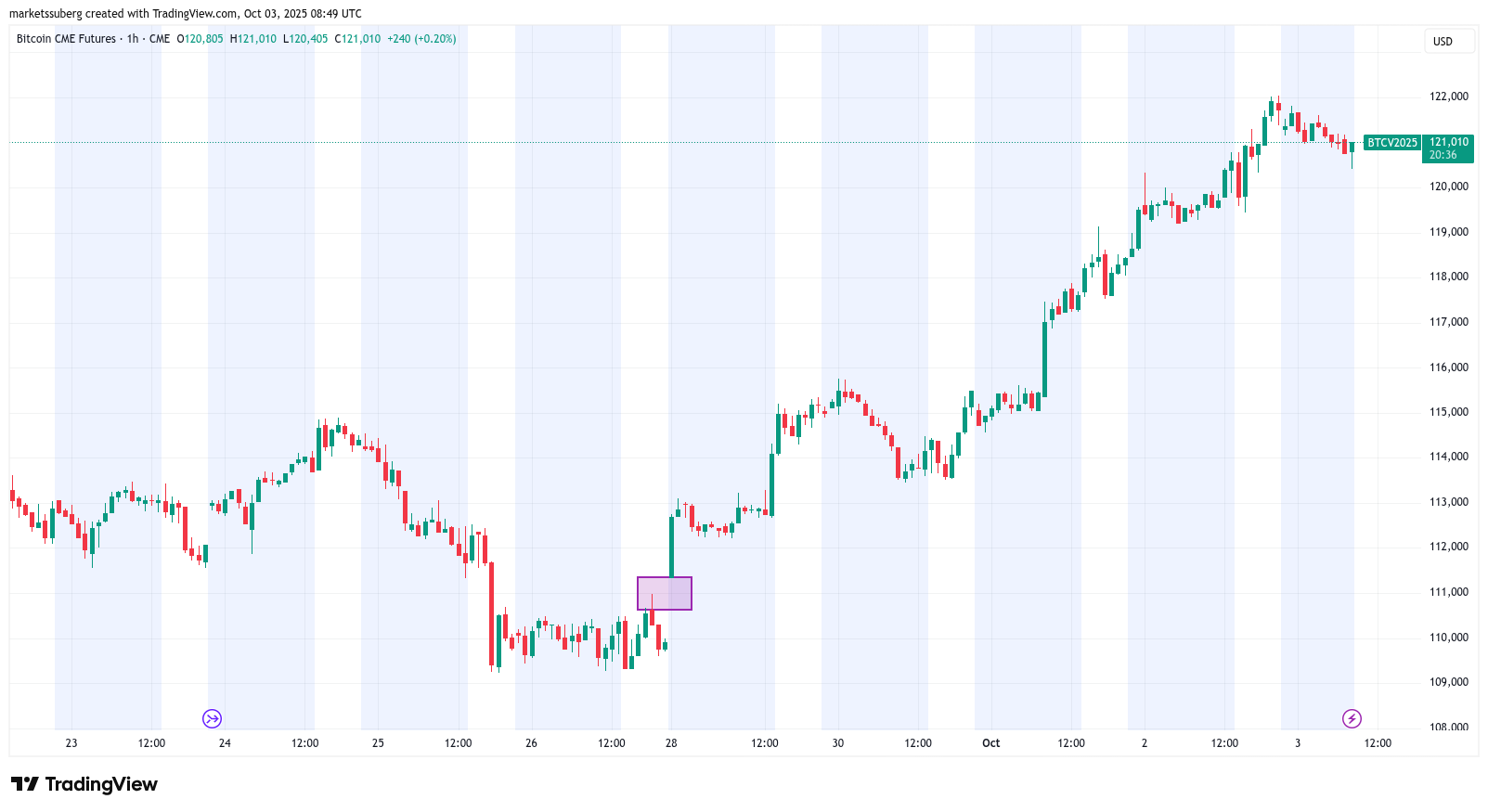 CME Group Bitcoin futures one-hour chart with space highlighted. Source: Cointelegraph/TradingView