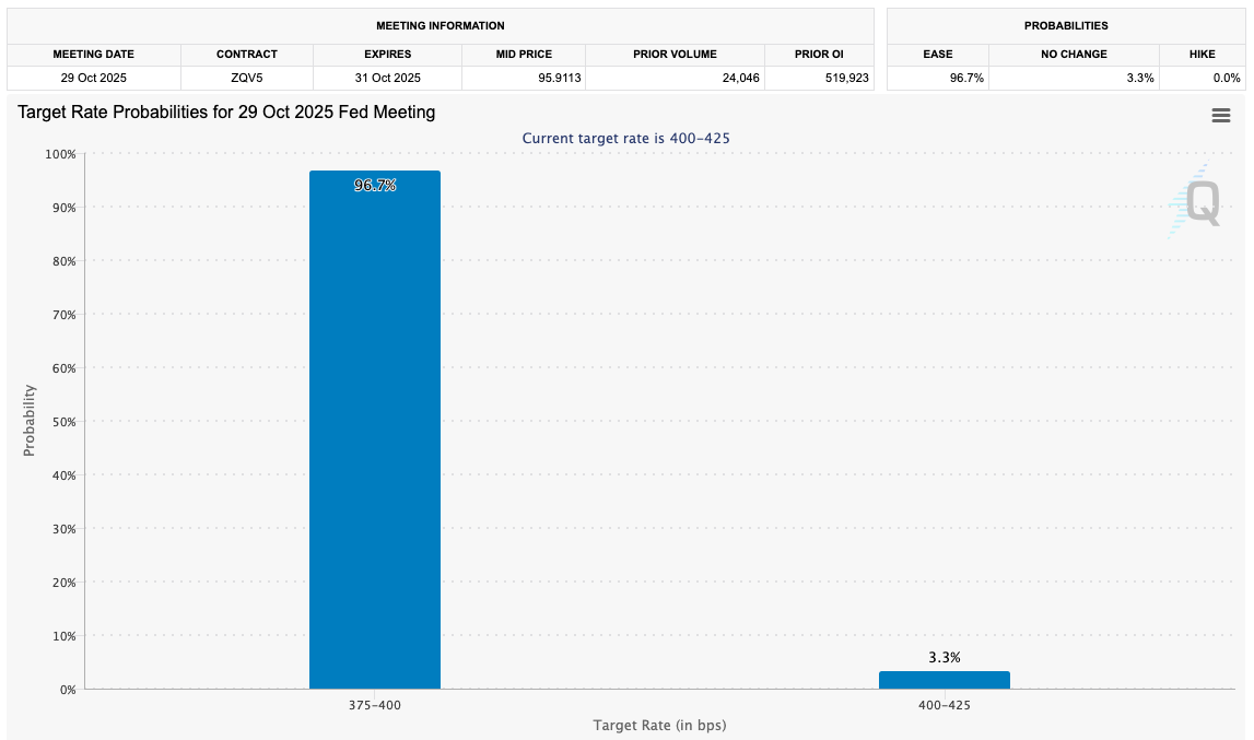 Fed target rate possibilities for October FOMC conference (screenshot). Source: CME Group