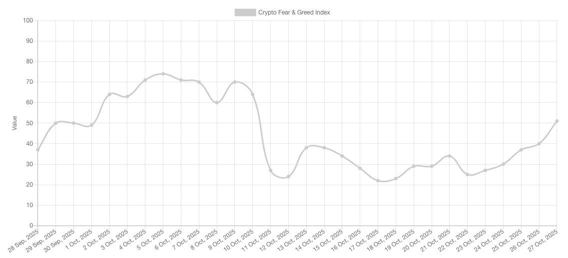 Information from the Crypto Worry & & Greed Index presently shows that the crypto market belief remains in “neutral” area.