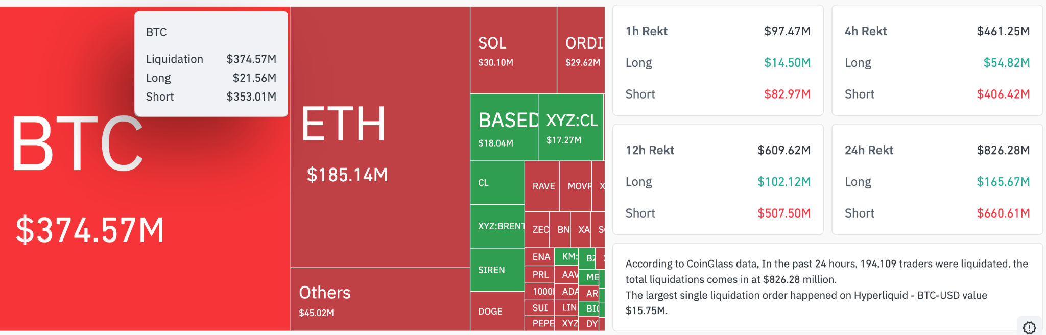 Throughout the board, $826 million was cleaned from the futures market over the last 24 hr.