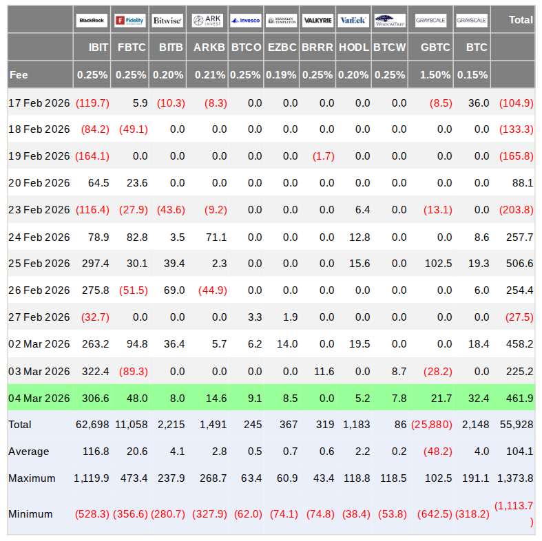 The United States area Bitcoin exchange-traded funds (ETFs) saw net inflows of almost $500 million on Wednesday.