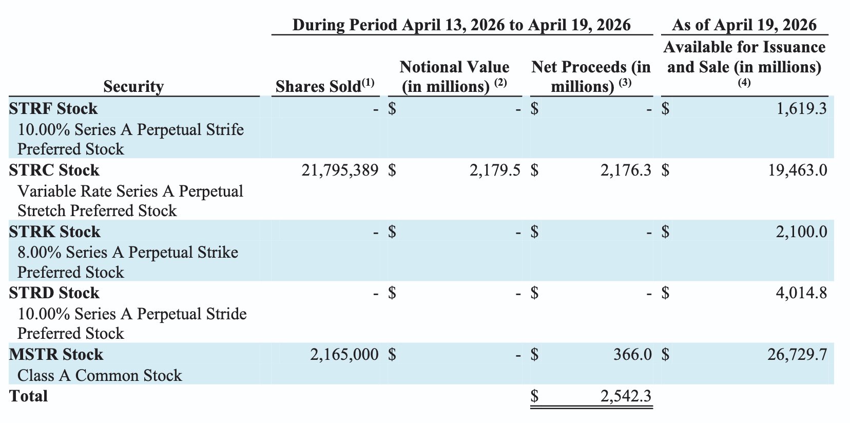 Method moneyed the majority of its newest 34,164 BTC purchase through its favored stock, Stretch (STRC), which produced over $2.17 billion through at-the-market share sales in between April 13 and April 19.