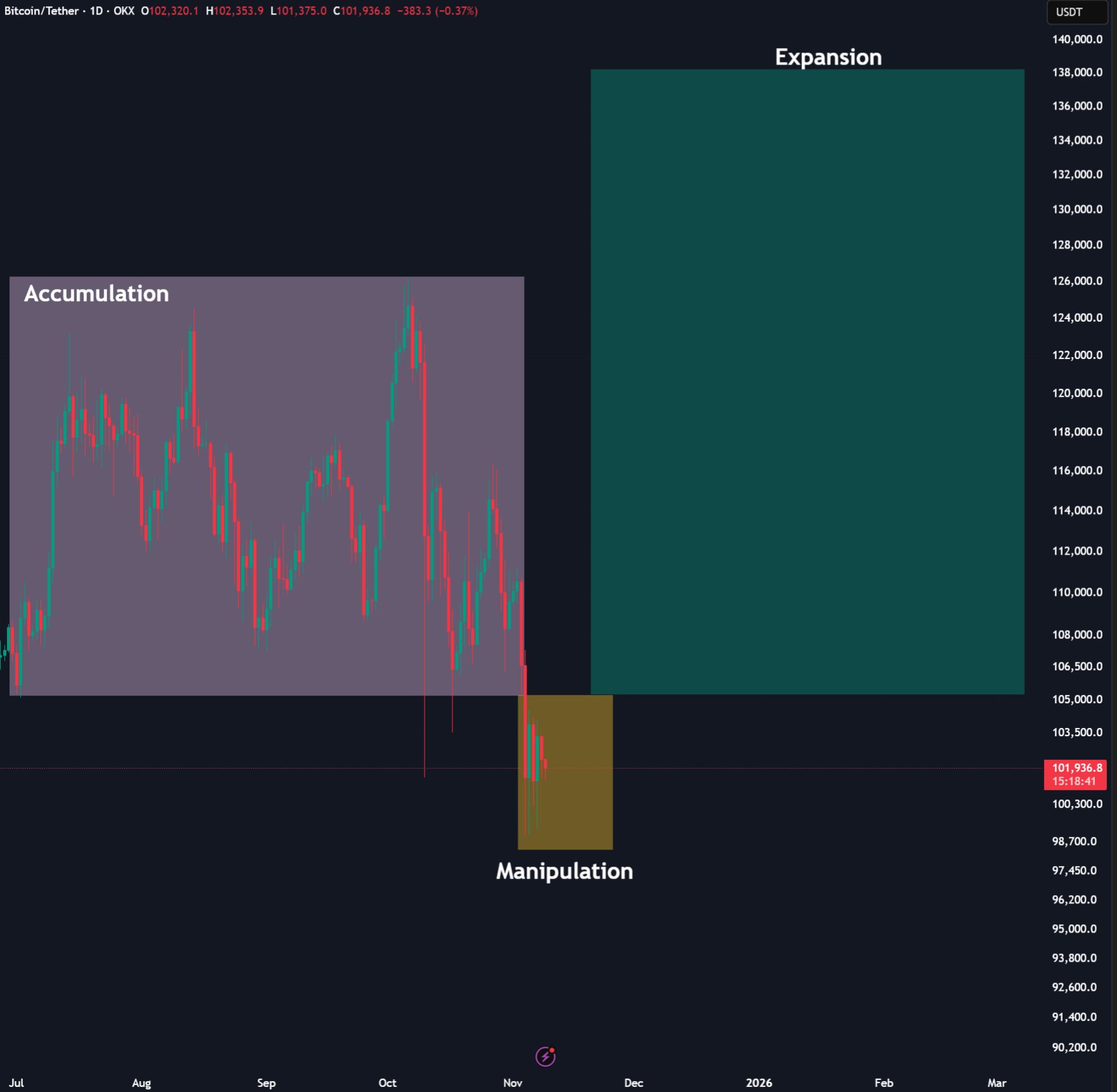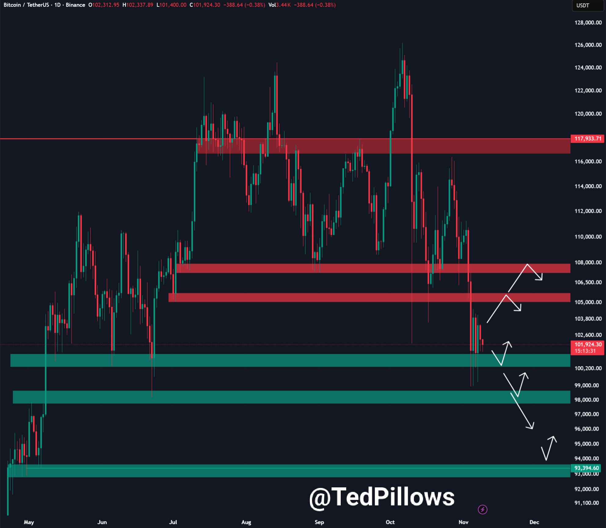 ” BTC is still combining around the $102,000 level. The marketplaces were anticipating completion of the federal government shutdown this weekend, however it didn’t take place,” he mentioned.