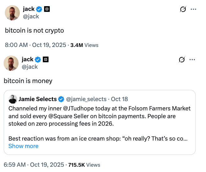 Dorsey required to X on Sunday to publish a quick message specifying “Bitcoin is not crypto,” triggering a huge action with more than 4,000 remarks.