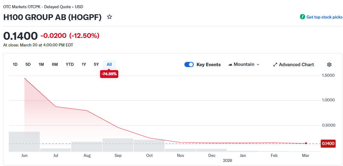 H100’s stock cost has actually been decreasing. It fell by over 74% in the previous 9 months and over 26% year-to-date in 2026, Yahoo Financing information programs.