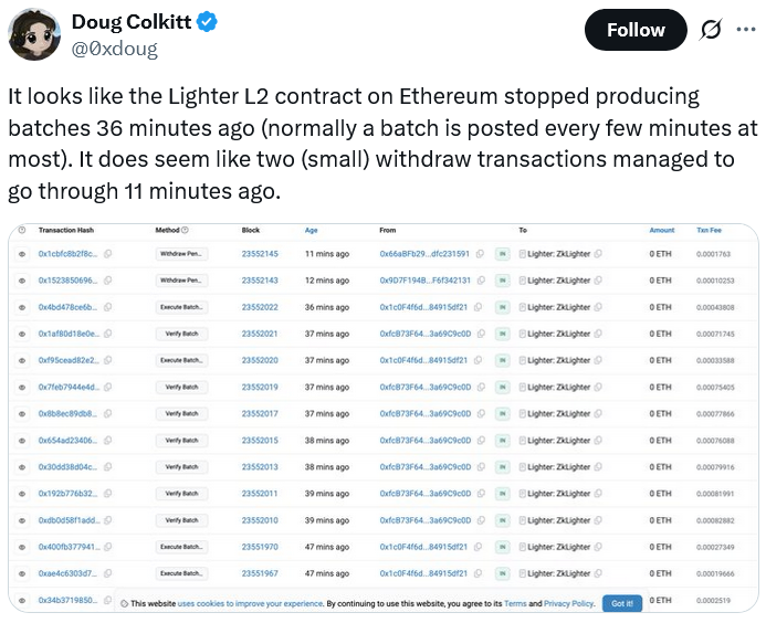 The Lighter group compensated almost 3,900 wallets $774,872 in USDC (USDC) for its Oct. 28 failure, among the network’s most noteworthy interruptions to date.