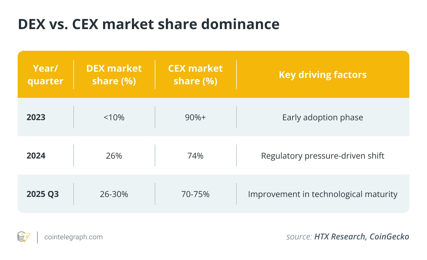 In 2025, continuous decentralized exchanges (DEXs) got in a stage of quick development, marked by growth in trading volume and other crucial metrics. The increase of hybrid main limitation order book (CLOB) designs significantly enhanced efficiency and user experience, narrowing the space with central exchanges (CEXs).
