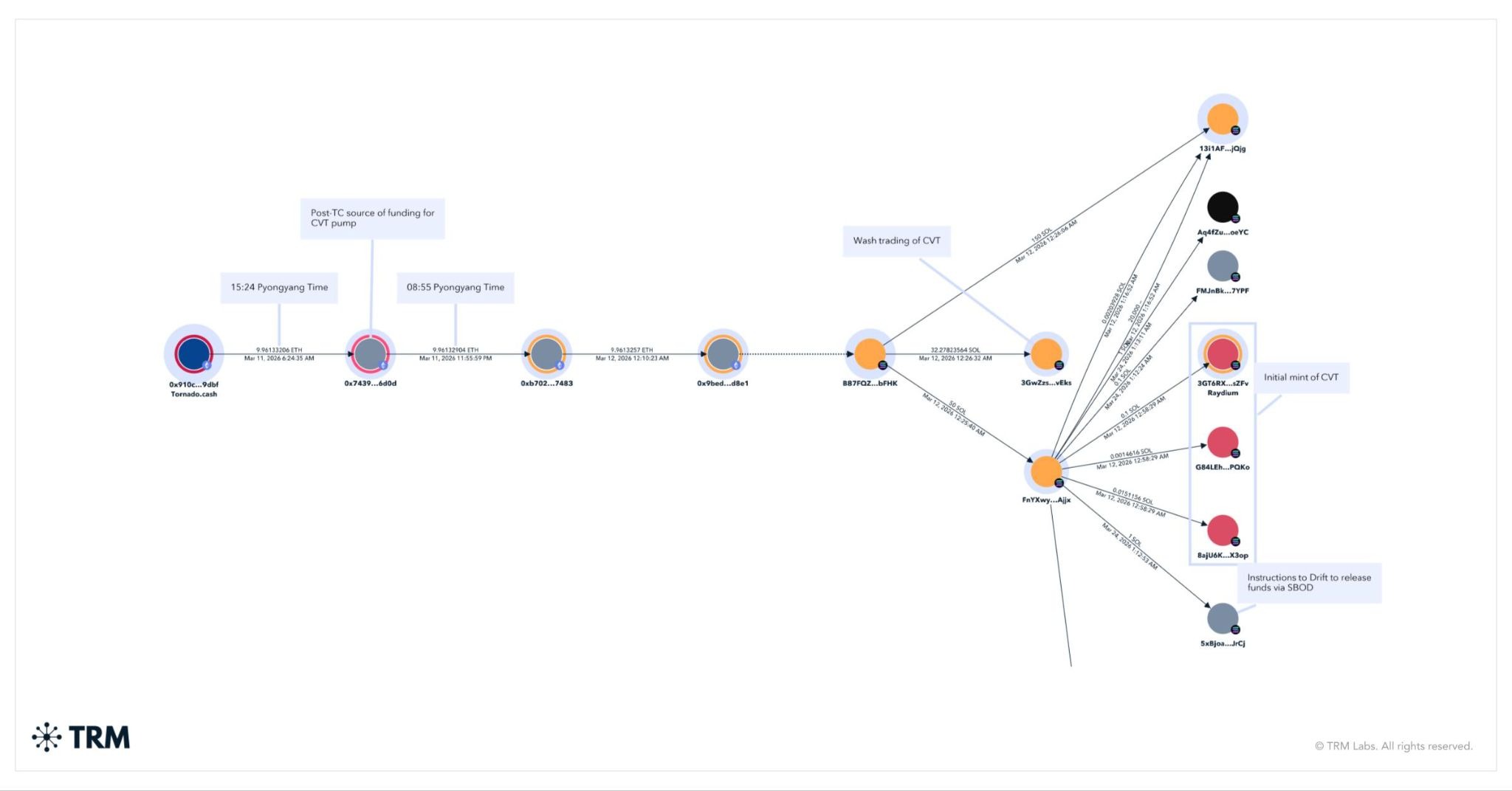 TRM describes funds moving from Twister Money in March utilized to get ready for the Drift make use of. Source: TRM Labs