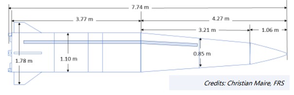 Approximated measurements for the KN-23, likewise called the Hwasong-11A. Source: Christian Maire, FRS