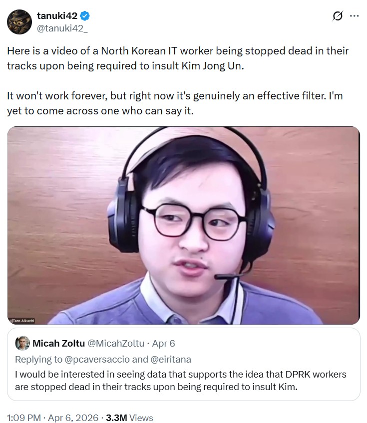 By now, tech headhunters have actually recognized that the individual at the other end of a virtual task interview might certainly be a North Korean cyber spy. A viral defence technique is to ask suspects to insult Kim Jong Un. Up until now, the method has actually worked.