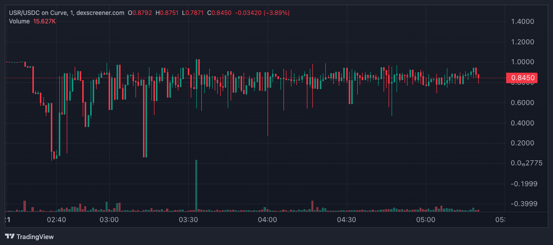 USR is presently trading at around 87 cents, around 13% off from the $1 peg the token objectives to keep, according to CoinGecko.