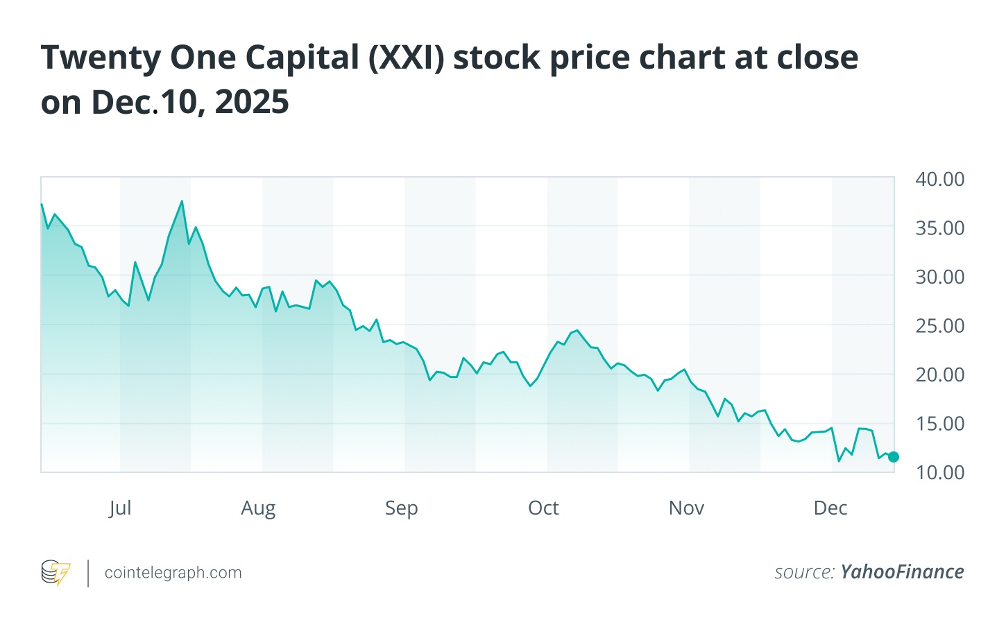 Provided the scale of its treasury and the profile of its backers, lots of market individuals anticipated strong attention around Twenty One’s launch. Yet its very first day of trading on Dec. 9, 2025, provided a various result. The stock fell greatly regardless of the business’s big Bitcoin holdings and prominent institutional assistance.