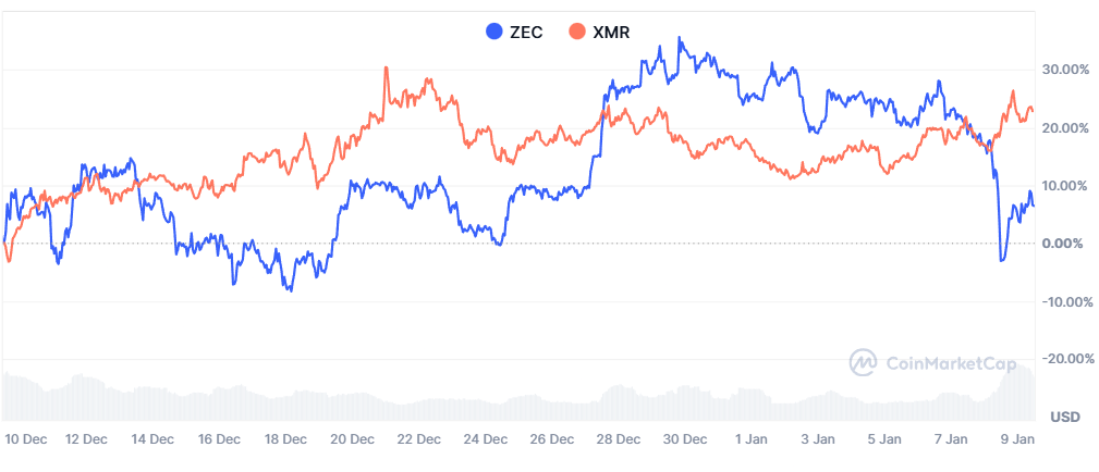 Personal privacy coin Zcash rival Monero (XMR) went beyond ZEC’s market capitalization on Thursday, restoring its position as the leading privacy-preserving cryptocurrency, according to CoinMarketCap.