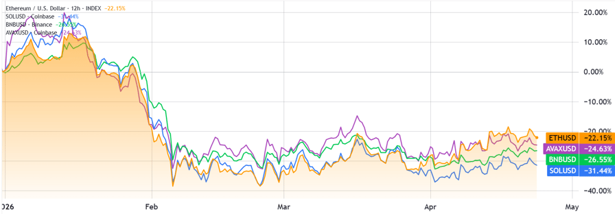 ETH vs. BNB, SOL, AVAX. Source: TradingView
