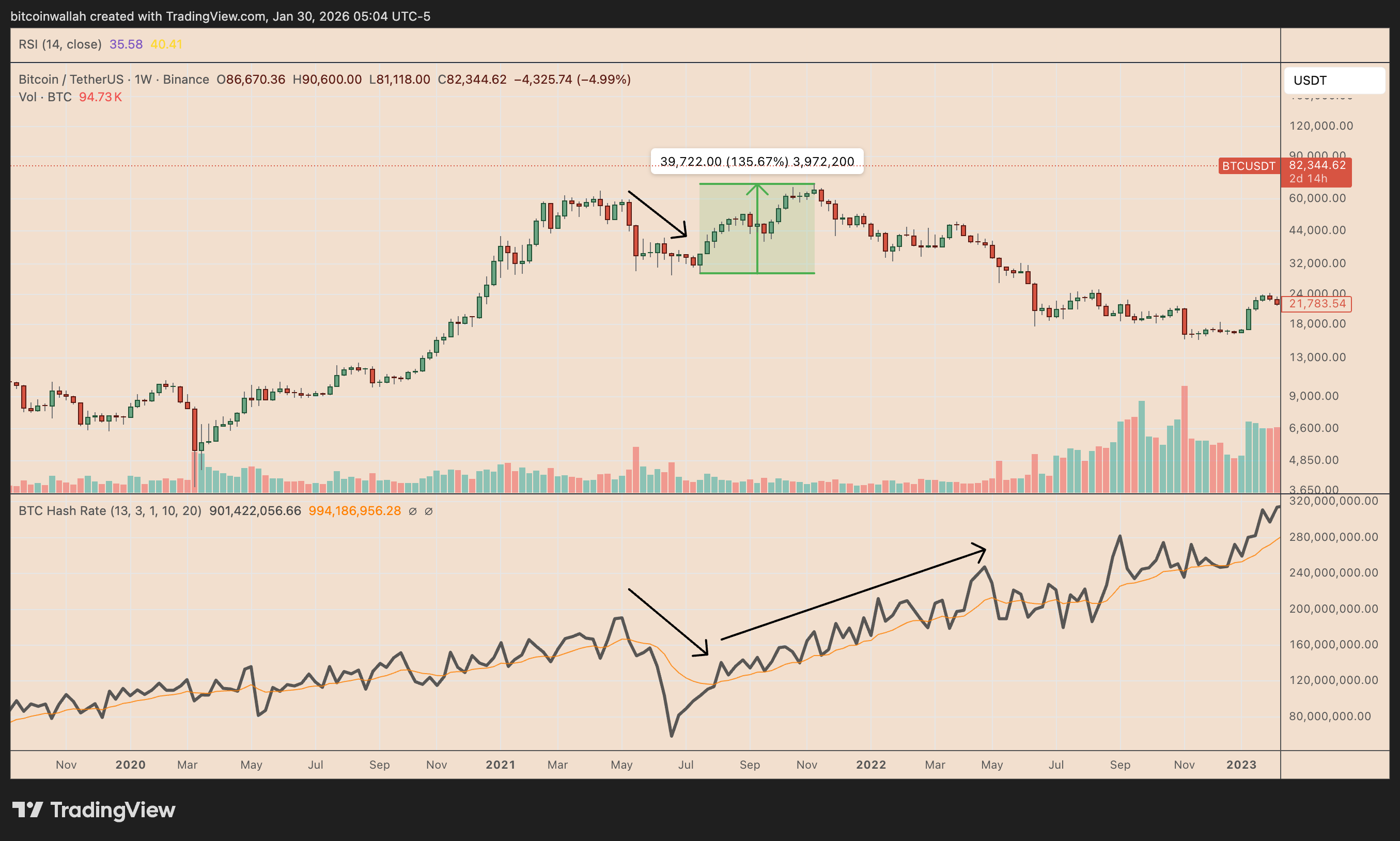 Huge hash rate drops frequently precede rebounds towards Bitcoin’s energy worth at $121,000.