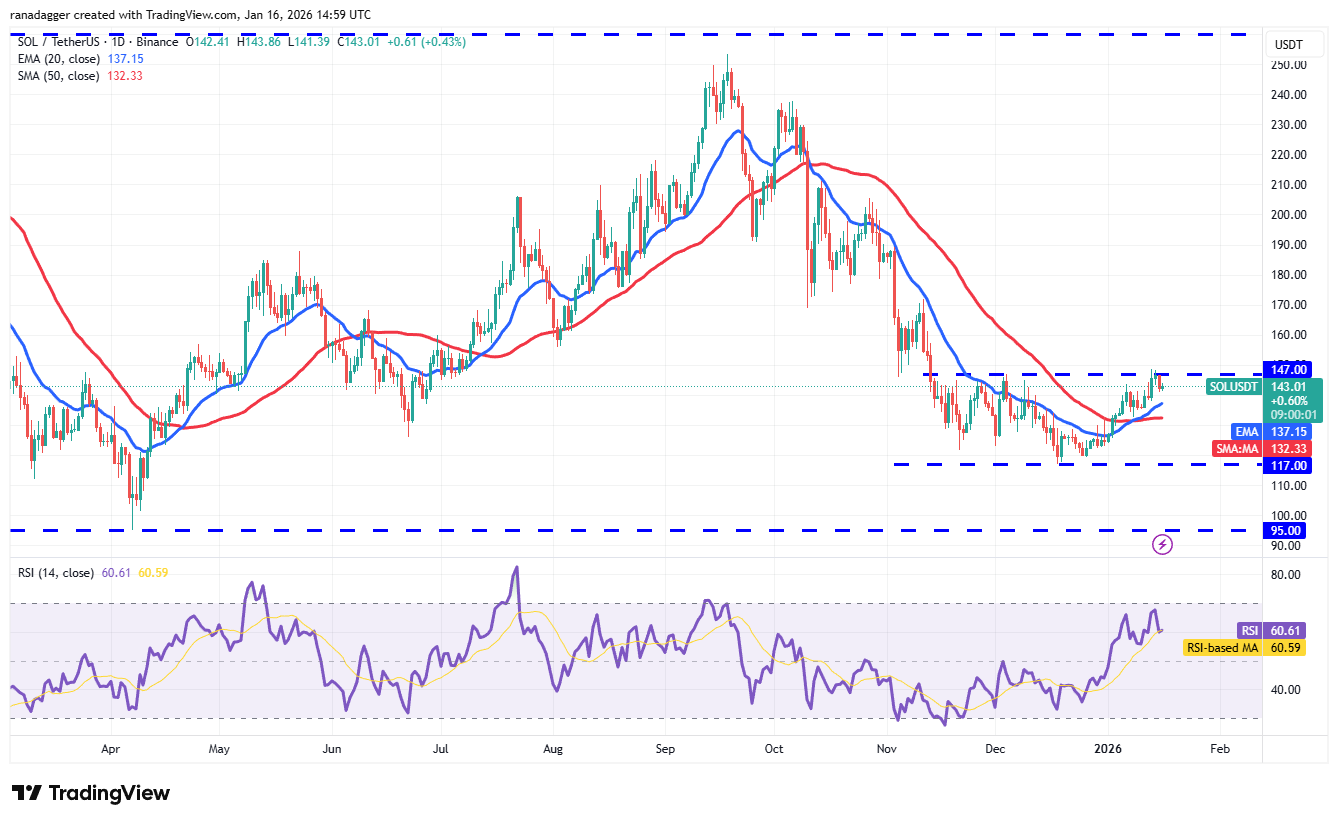 The upsloping 20-day EMA ($ 137) and the RSI in the favorable area recommend that purchasers remain in control. That increases the probability of a break above the $147 resistance. The SOL/USDT set might then rise towards $172.
