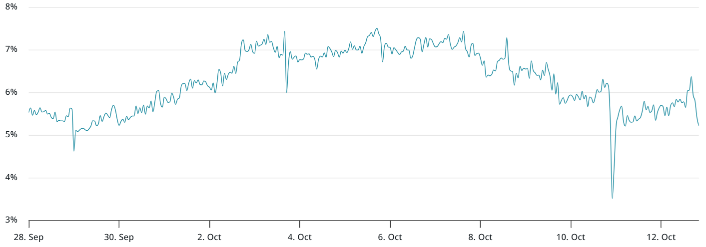 The financing rate on ETH continuous futures plunged to -14%, indicating brief (bearish) traders are paying to keep their positions open, an unsustainable condition over extended durations. This uncommon setup most likely shows growing worries that particular market makers or perhaps exchanges might be dealing with solvency problems. Whether those issues have benefit or not, traders usually show higher care up until self-confidence is completely brought back.