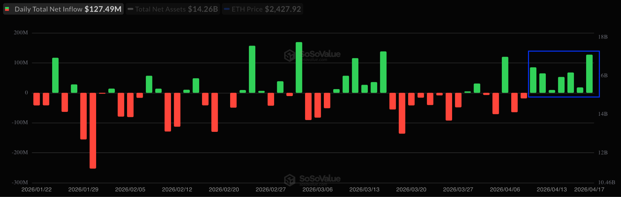 On the other hand, worldwide Ethereum financial investment items taped $328 million in inflows throughout the week ending April 17.