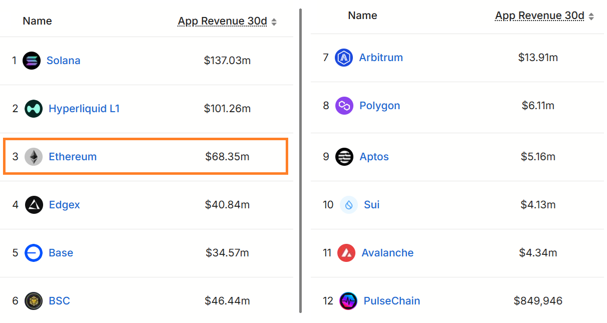Ethereum’s supremacy in overall worth locked (TVL) and effective layer-2 adoption are indisputable. Still, traders question whether these strengths will equate into greater earnings for decentralized applications (DApps) constructed on Ethereum. Solana presently holds an one-upmanship in DApps earnings, while emerging gamers such as Hyperliquid likewise present growing obstacles.
