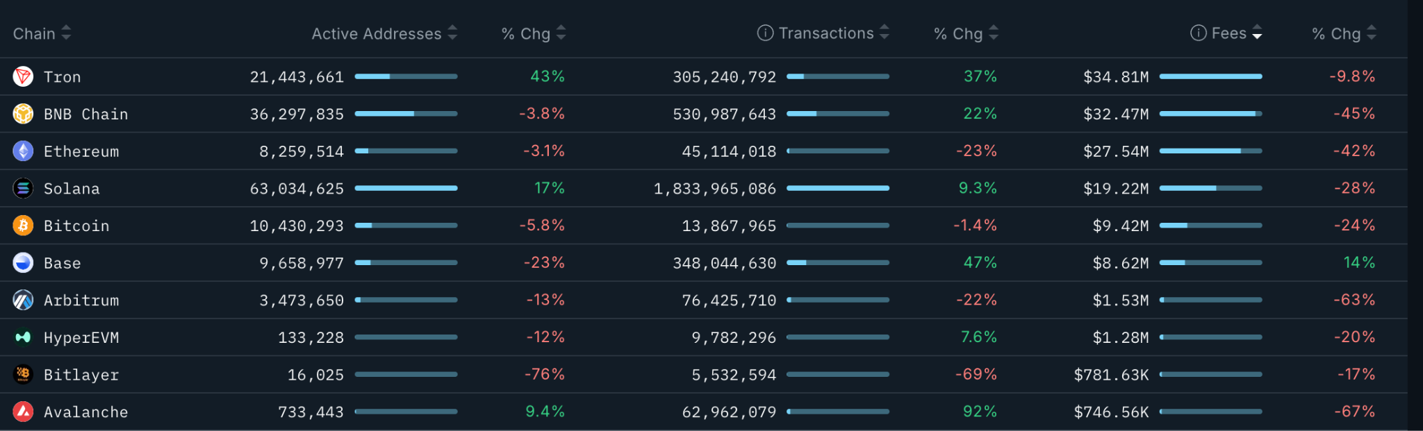 Ethereum’s costs over the previous thirty days dropped to $27.54 million on Friday, representing a 42% reduction. Likewise, Solana’s costs decreased simply 9.8% while BNB Chain profits come by 45%, strengthening the bearishness in the market.