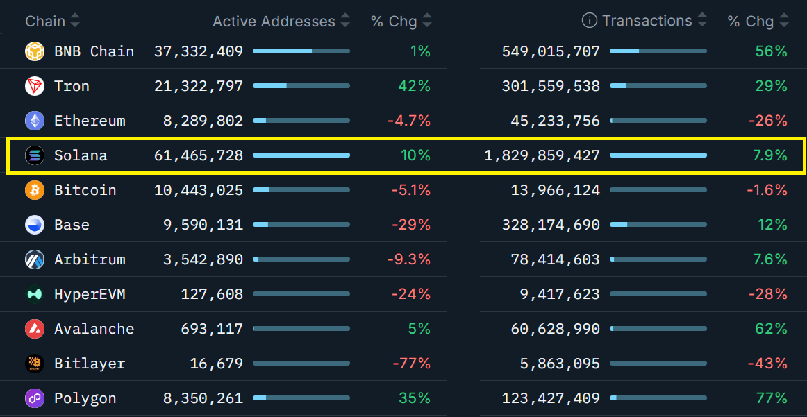 Network activity on Solana has actually risen over the previous one month, with active addresses increasing by 10% and deals increasing by 8%. By contrast, Ethereum saw 5% less active addresses and a 26% drop in deals throughout the very same duration. Hyperliquid, an increasing rival in the decentralized exchange (DEX) area, likewise experienced a 28% decrease in onchain activity.