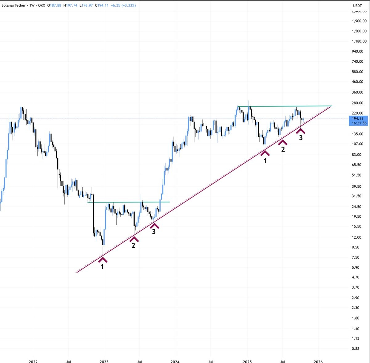 A comparable target was set by expert BitBull, who stated “$ SOL is still holding its 3-year assistance trendline,” with the most crucial level for Solana being $280.