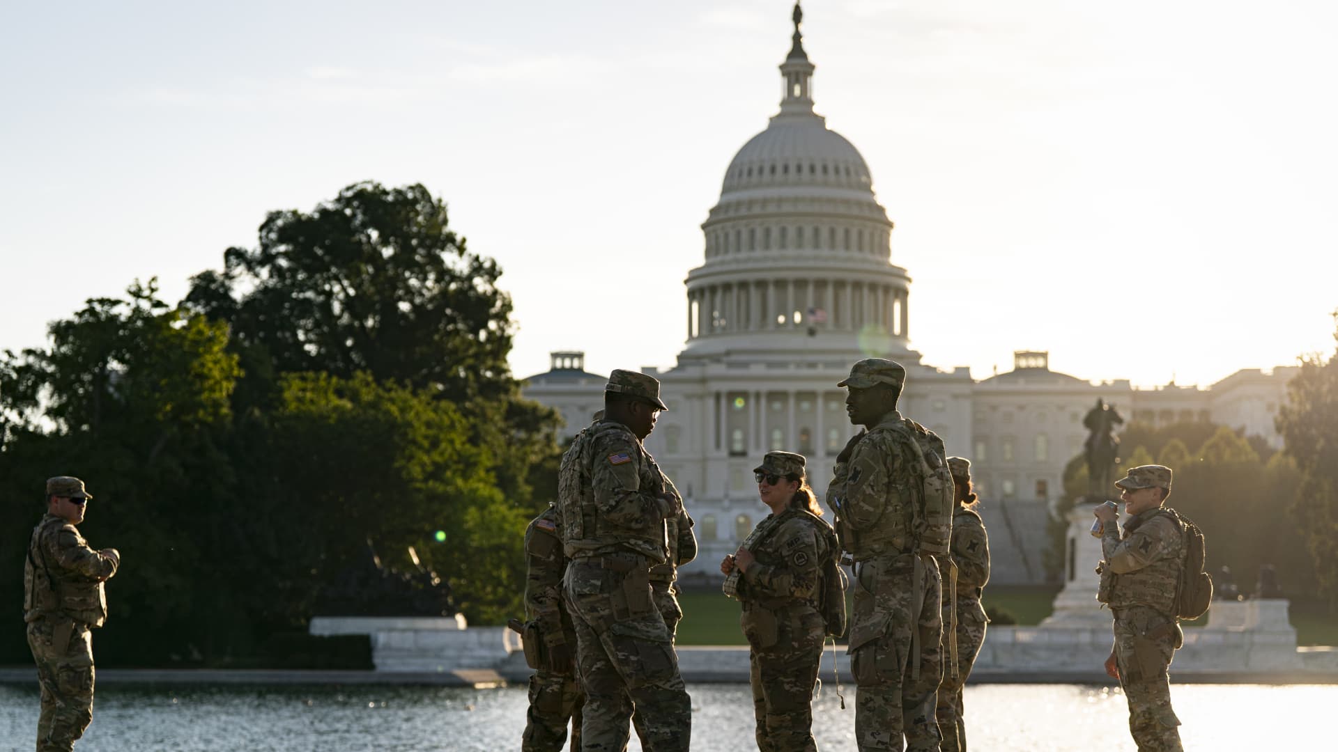 Members of the National Guard patrol near the U.S. Capitol on Oct. 1, 2025 in Washington, DC.